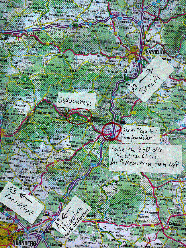 Leave A9 at the exit Pegnitz / Grafenwoehr.